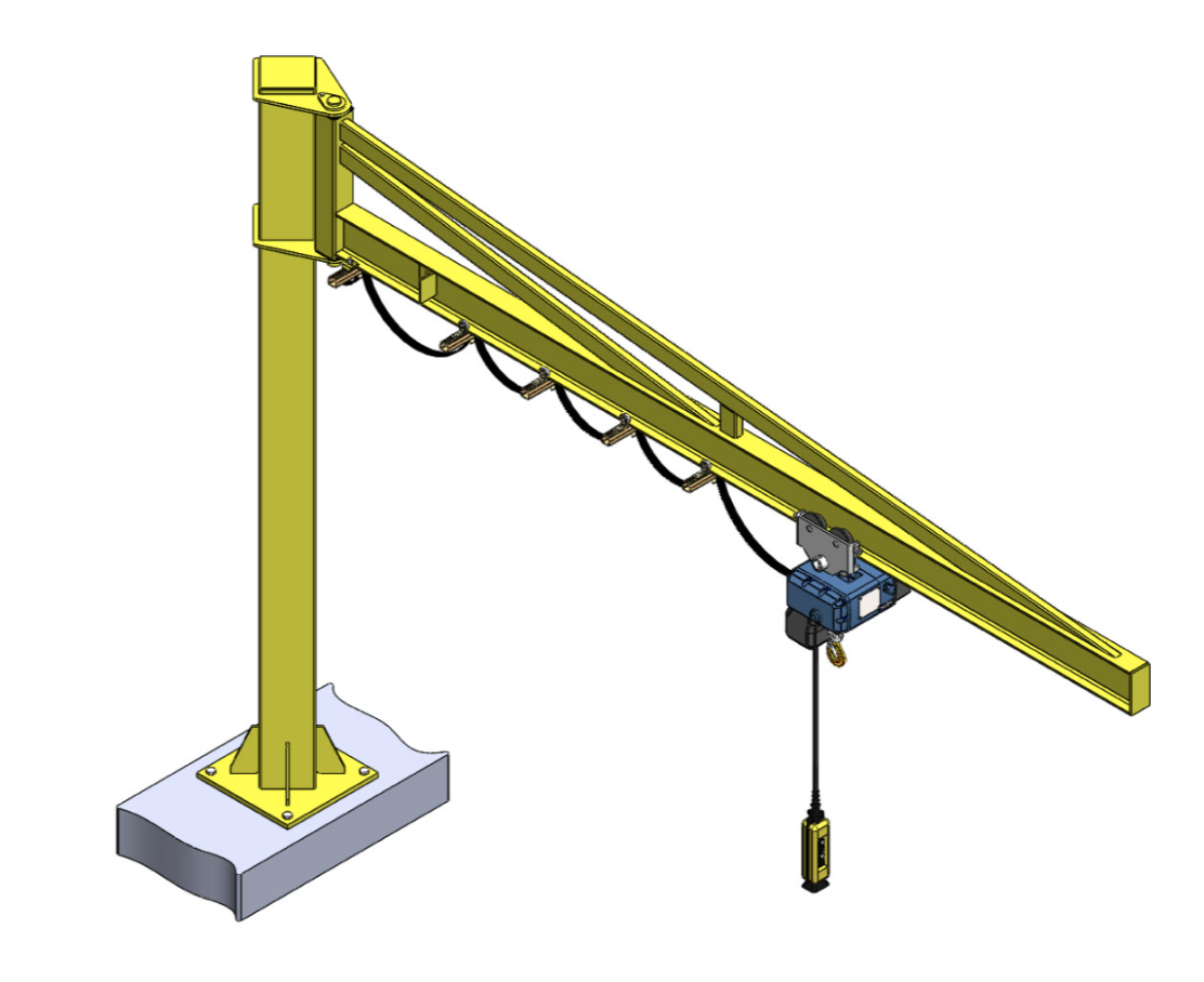 | Model | SWL (udźwig) | Wysokość [mm] | Promień [mm] | Materiał | Masa ramienia [kg] | Masa kolumny [kg] | Masa wciągnika [kg] | Siła pionowa P1 [kN] | Moment wywracający Mf [kNm] | Wykończenie (RAL) | Prędkość podnoszenia [m/min] | Średnica tuby podnoszącej [mm] | Długość tuby podnoszącej [mm] | Skok [mm] | Długość uchwytu [mm] | Maks. przepływ objętościowy [m3/h] | Rysunek | Instrukcja |